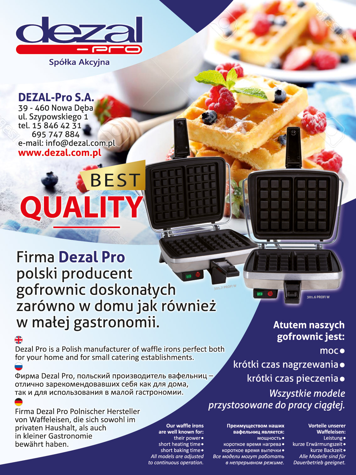 DEZAL-Pro S.A. je polský výrobce vaflovačů, perfektně se hodící jak pro domácí využití tak i profesionální gastronomii. Více na www.dezal.com.pl |