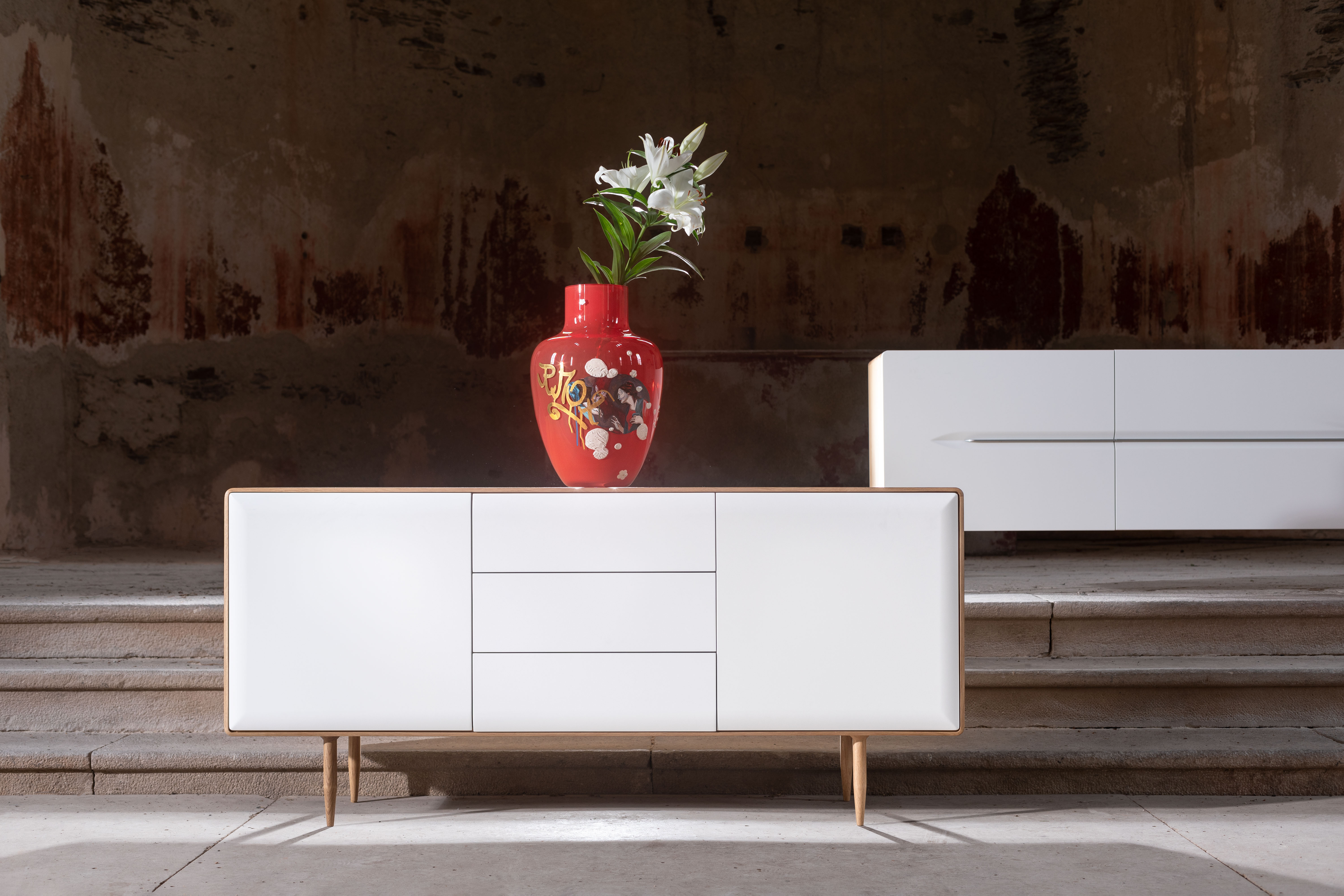 Komoda z kolekce Stela vznikla podle návrhu designéra Petra Šebely. Pro zákazníky přináší kombinaci jemného elegantního stylu a masivního dubového dřeva. Zaoblené křivky působí příjemně a jsou bezpečné i v domácnostech s dětmi. Specialitou komody je tvarování čelních dvířek, které jsou zaoblené nejen v rozích, ale i do prostoru. Tohoto plastického tvaru je dosaženo opracováním MDF desky na CNC. Dvířka jsou lakována čtyřmi vrstvami polomatného laku. Na masivní dubové části komody je použit hluboce matný bezbarvý lak, který je namíchaný tak, aby zůstala zachována přirozená struktura dřeva i pohled i dotek.Více na www.triant.cz