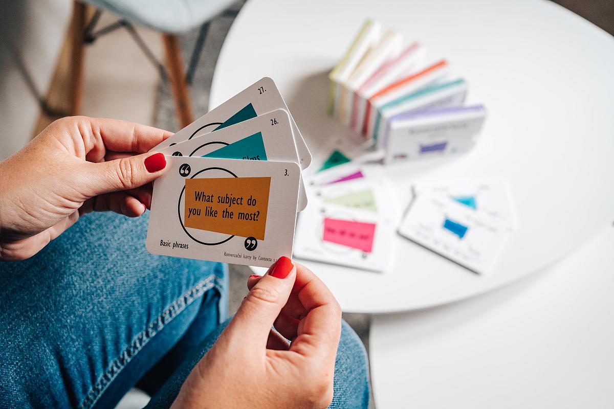 Jak si procvičit cizí jazyk? Konverzací. Témat je plno, otázek ještě víc a odpovědí nejvíc. S Contexťáckými kartami Vám nedojde řeč. Tak jaká bude Vaše příští konverzace? Konverzační karty jsou určené pro mírné začátečníky až středně pokročilé. Hrát můžete ve dvojicích, ve skupinkách,… Vyberte si jedno ze šesti témat a pusťte se do toho! Jak? Jednoduše.