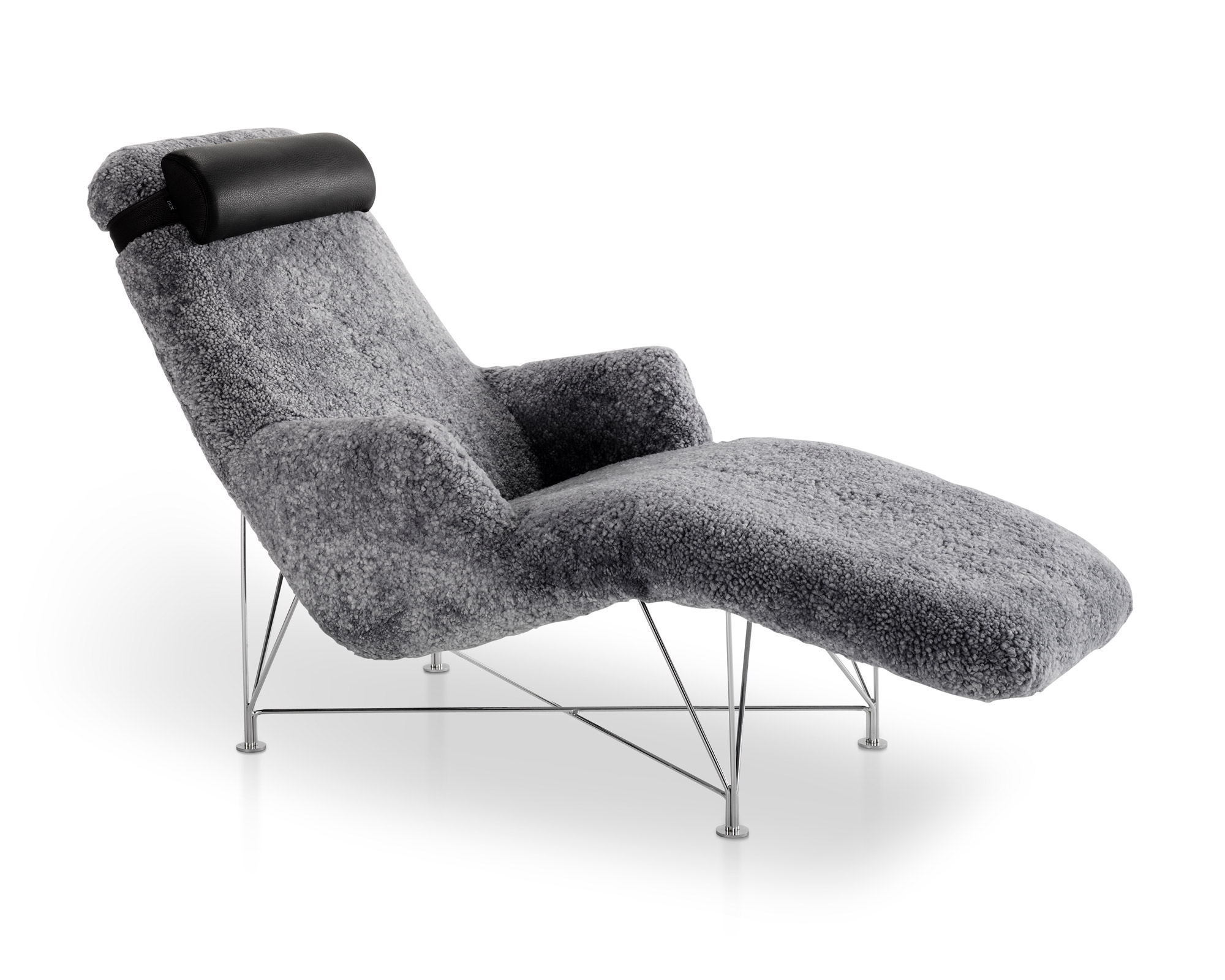 Sedací a zádová část z chromované oceli s výpletem z pásků Pirelli.