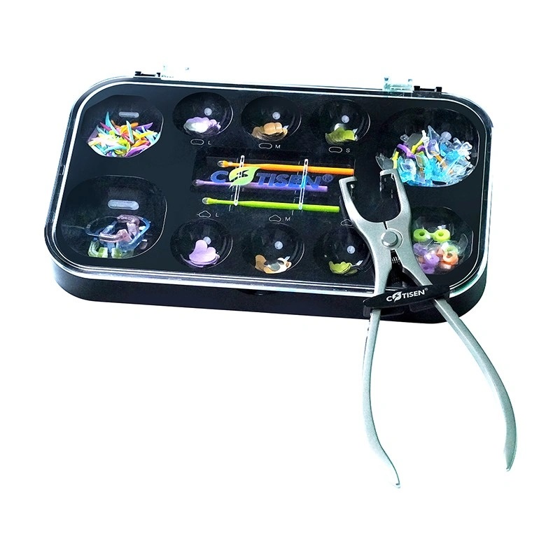 Matricový systém pro zhotovení výplně. Sada obsahuje pomůcky, které se používají při zhotovení zubní výplně.