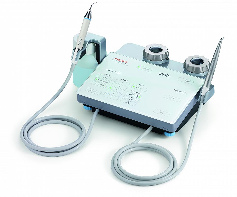 Combi Touch kombinuje ultrazvukovou technologii s práškovým leštěním v jednom přístroji, což umožňuje komplexní profylaktické ošetření – od odstranění supragingiválního i subgingiválního zubního kamene až po šetrnou eliminaci pigmentací a biofilmu, včetně bezpečného čištění povrchu dentálních implantátů.