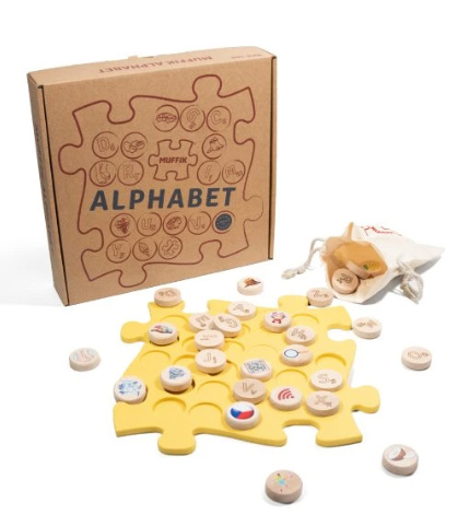 Ortopedická podložka MUFFIK – Abeceda je inovativní zdravotní a vzdělávací pomůcka, která kombinuje péči o zdraví, učení a zábavu do jednoho produktu. Tato podložka je navržena tak, aby podporovala dětskou kreativitu, motorický rozvoj a přirozený pohyb. Obsahuje 28 dřevěných dílků, které se vkládají do otvorů v podložce. Každý z dílků je oboustranný – na jedné straně najdete písmeno abecedy a na druhé obrázek předmětu, který začíná na dané písmenko. Díky tomu se děti učí abecedu zábavně a hravě.