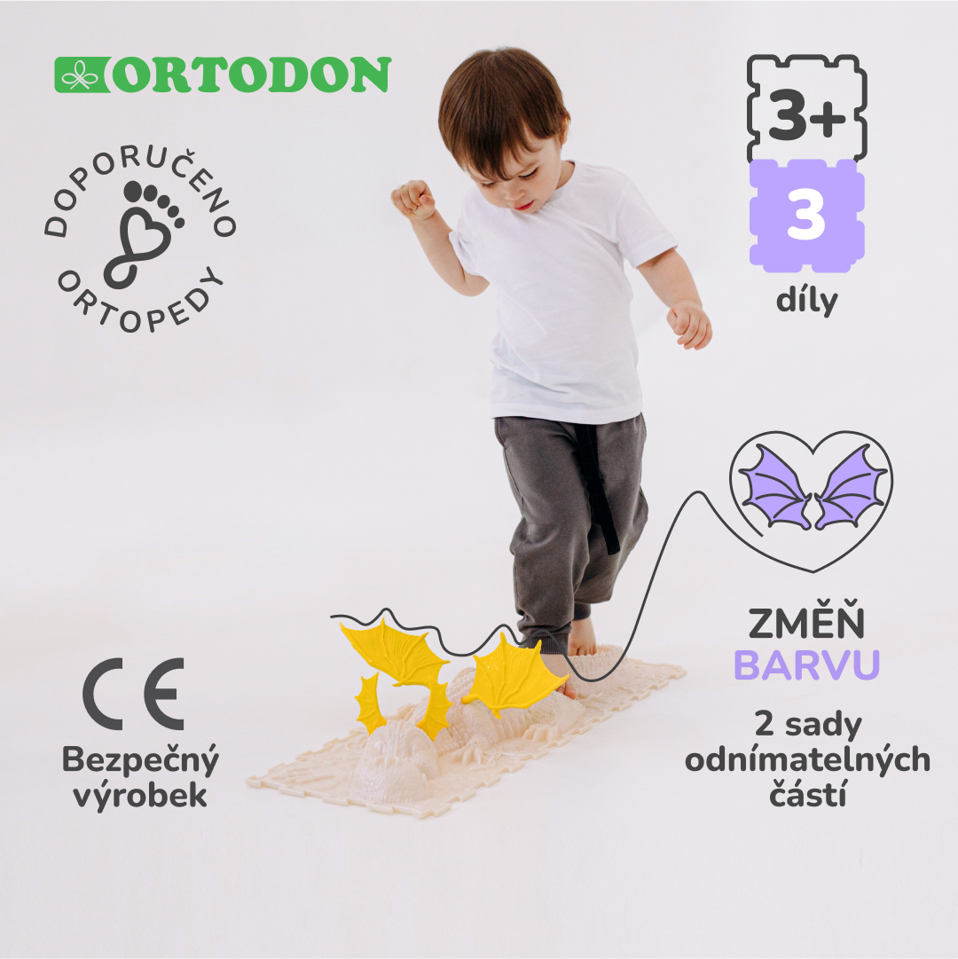 „DRÁČEK“ je sada masážních koberečků ORTODON, skládající se ze 3 částí: hlava, trup a ocas. Zlepšuje motorické dovednosti, koordinaci a rovnováhu a lze ji kombinovat s dalšími podložkami.
