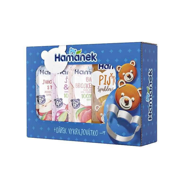 Hamánek proto přichází s limitovaným vánočním balením, které kombinuje oblíbené chutě ovocných kapsiček, špaldových – perníkových piškot, a navíc přináší i malý dárek, který potěší každé dítě ve formě vykrajovátka.