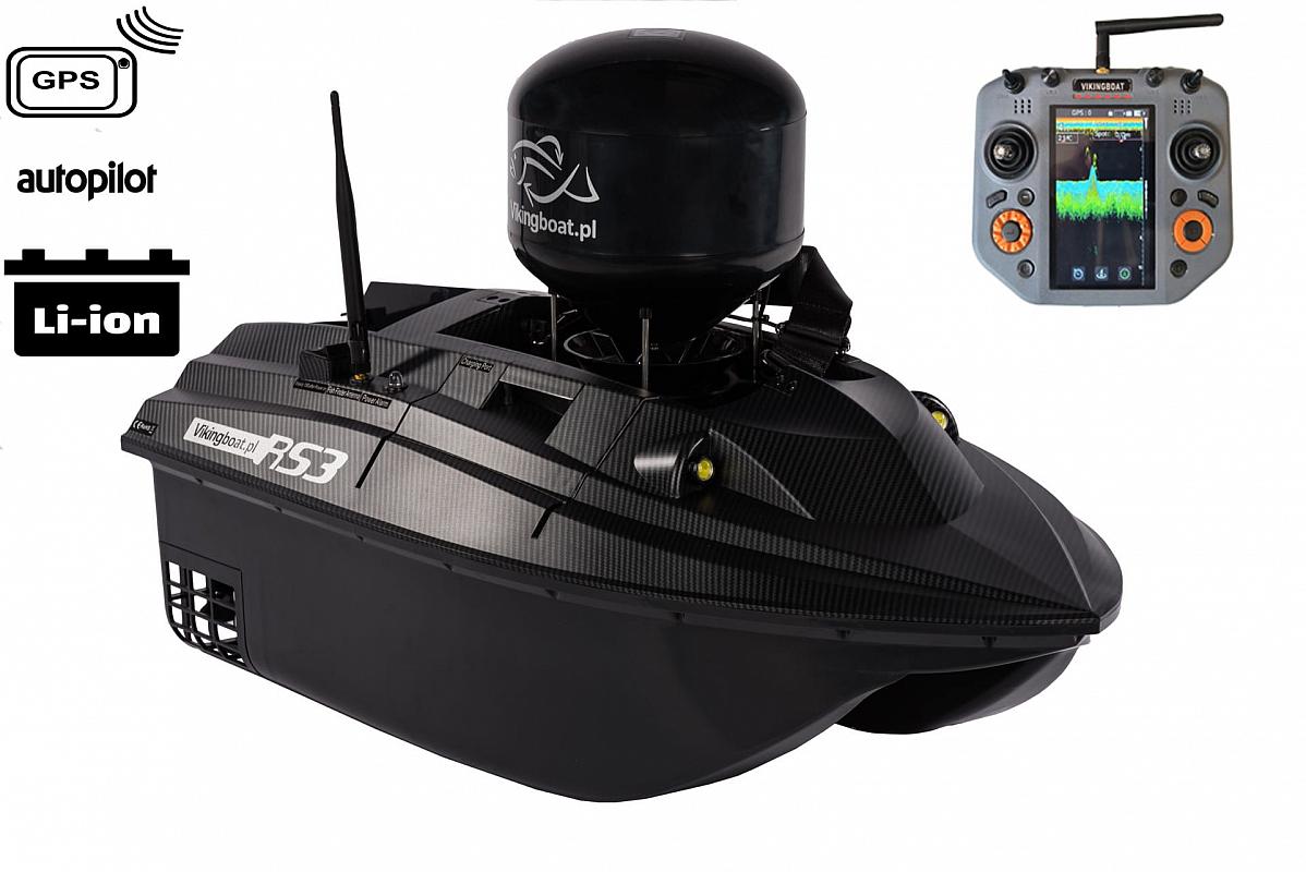 VIKING RS3 je jedním z nejsilnějších a nejrychlejších zavážecích loděk dostupných na trhu. Naše loď má v dálkovém ovladači kvalitní barevný echolot. Disponuje funkcí GPS a AUTOPILOT. Konstrukce lodi umožňuje překonat velmi vysoké vlny třídy 5-6. Velmi tiché a úsporné motory vám umožní uplavat 18-22 km na jedno nabití. Loď dosahuje rychlosti 90m/min.
