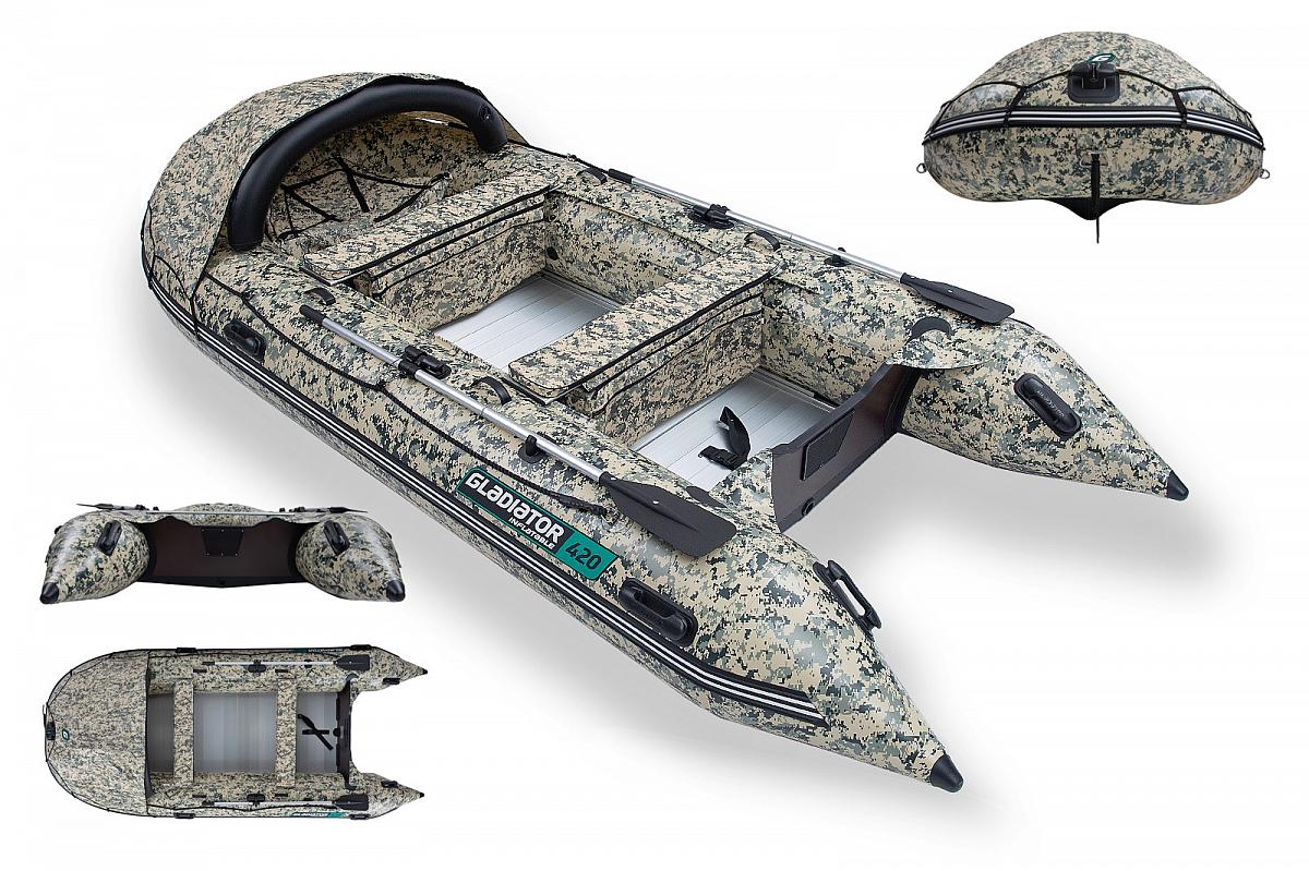 Prostorný a robustní nafukovací člun Gladiator Active C420AL přináší rybářům vyšší komfort a nové možnosti na vodě. Díky skládací konstrukci se snadno přepravuje i rychle sestaví. Hliníková skládací podlaha zajišťuje stabilitu při rybolovu a nafukovací kýl ve tvaru V výborné jízdní vlastnosti. Měkké sedáky s úložnými vaky, příďový vak na kotvu a nafukovací stříška zvyšují pohodlí při každém výjezdu.