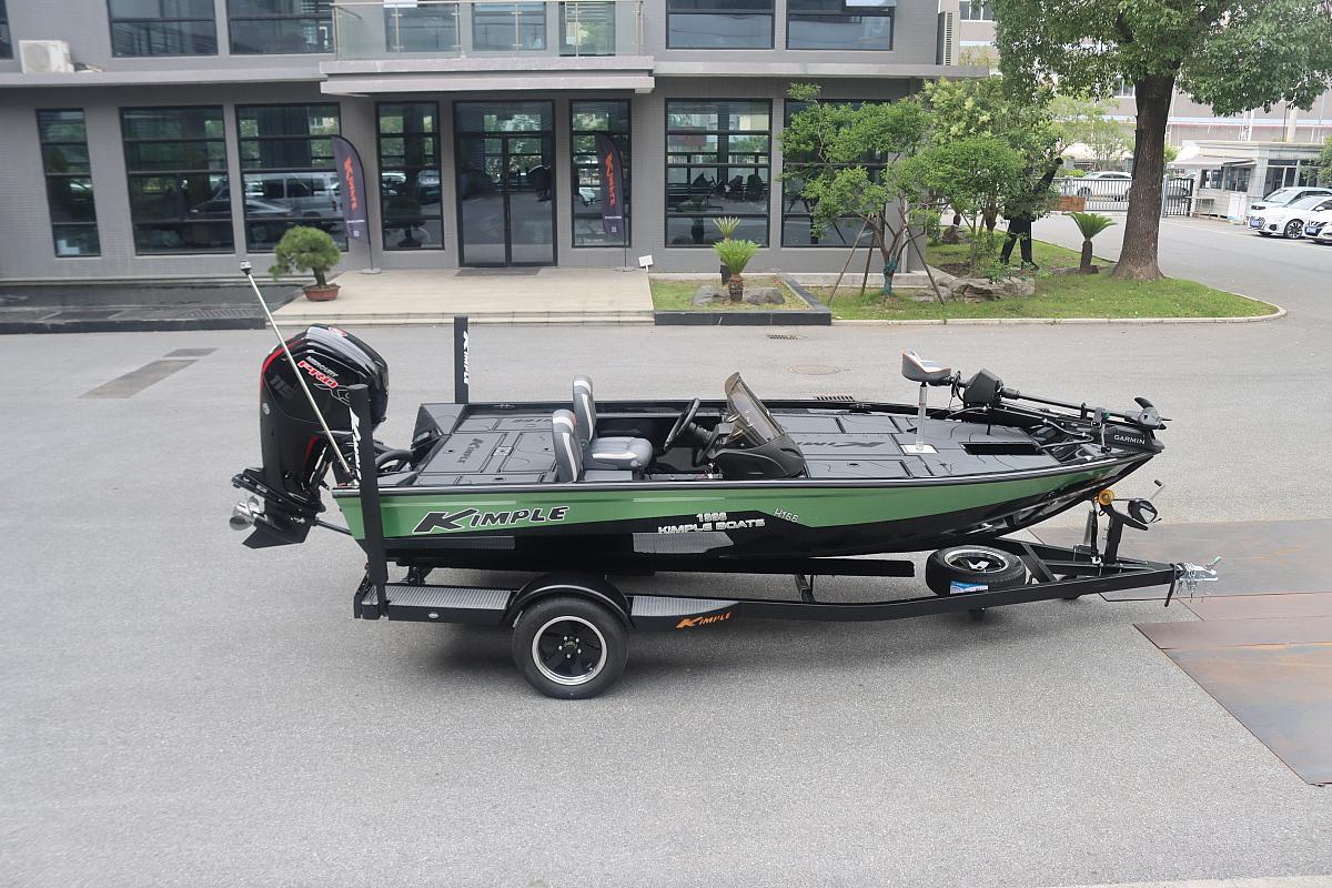KIMPLE HUNTER H166 – novinka pre rok 2025. Model H 166 je navrhnutý pre maximálny výkon, stabilitu a komfort pri športovom rybolove. Pod zdvihnutými palubami sa nachádzajú veľké úložné priestory a 90-litrová nádrž na ulovené ryby a 80-litrová palivová nádrž. K dispozícii je aj bočná skrinka na prúty a sedadlo pre basistu. Loď má úplne zakrytú podlahu, boky a palubu z EVA. Nová rotomoldovaná konzola – uzamykateľné skrinky na prúty na palube.